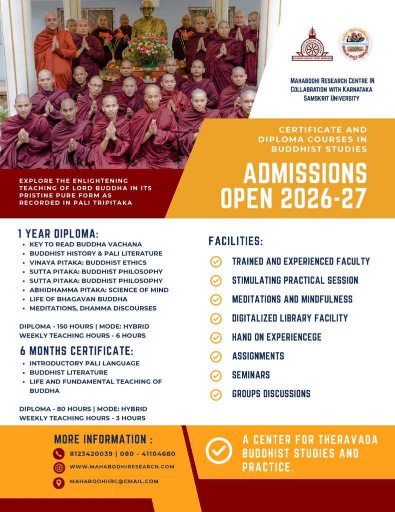 âMy experience with Mahabodhi Research Centre's online Buddhist Diploma was truly transformative. After attending weekend courses in Bengaluru, I enrolled in their online program when the pandemic began. The curriculum, which covered Pali language, Buddhist scriptures, and meditation, was challenging but incredibly rewarding. Thanks to the support of Buddhadatta Bhante and the faculty, I gained a deeper understanding of the Buddhaâs teachings, which greatly enhanced my work as a translator of Buddhist texts. The recorded lectures allowed me to catch up despite my teaching commitments in Switzerland. Over two years, I not only expanded my academic knowledge but also developed the right understanding of the Dharma, the first step on the Noble Eightfold Path. Iâm deeply grateful for the opportunity to study at Mahabodhi during such a difficult time.â